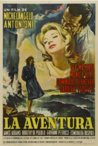La Avventura è un film del 1960, diretto da Michelangelo Antonioni. È il primo capitolo della cosiddetta “trilogia esistenziale” o “trilogia dell’incomunicabilità”, proseguita con La notte e conclusa da L’eclisse. Il film, il più lungo del cineasta estense, segna l’inizio del sodalizio sentimentale-artistico fra il regista e Monica Vitti. Presentato in concorso al 13º Festival di Cannes, vinse il Premio della giuria.